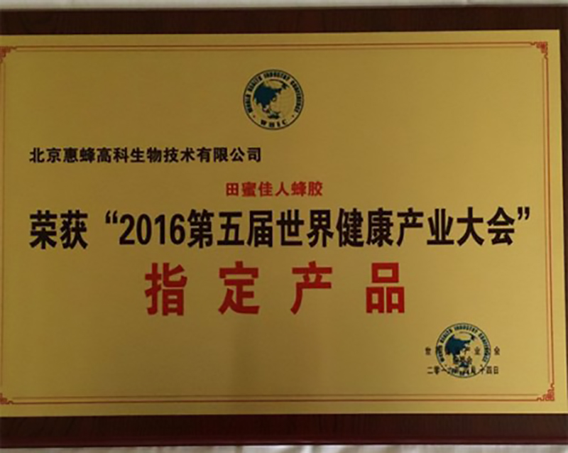 祝賀北京惠蜂高科生物技術(shù)有限公司——蜂膠產(chǎn)品拿到2016世界健康產(chǎn)業(yè)大會指定產(chǎn)品