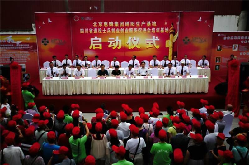 陳世俊中將在儀式上作重要講話。他說:倪仔鑫董事長從戎是個好兵;從業(yè)是個優(yōu)秀企業(yè)家,他領導的北京惠蜂集團獲得了“世界健康養(yǎng)生領軍企業(yè)”的殊榮。他懷著一顆感恩的赤子之心,為父老鄉(xiāng)親們提供先進的健康生活方式和優(yōu)質的健康產品。今天,綿陽生產基地建成投產,不僅為川內,而且為整個西南乃至全國老百姓的健康,提供了更便捷、更低廉、更直接的服務。同時,也為退役軍人的就業(yè)創(chuàng)業(yè)搭建了平臺,提供了培訓場所。這是利國利民利兵的大好事,也是惠蜂人企業(yè)價值觀的真實體現。習近平同志講“沒有全民的健康,就沒有全面的小康。”“建設健康中國”寫進了《政府工作報告》,列入了我國“十三五發(fā)展規(guī)劃”。我堅信,惠蜂人完全可以擔當起這個時代的重任。只要我們始終堅持“不忘初心,繼續(xù)前進”的發(fā)展理念,就一定會為四川的經濟發(fā)展,人民的健康生活和民族復興的“中國夢”做出應有的貢獻。