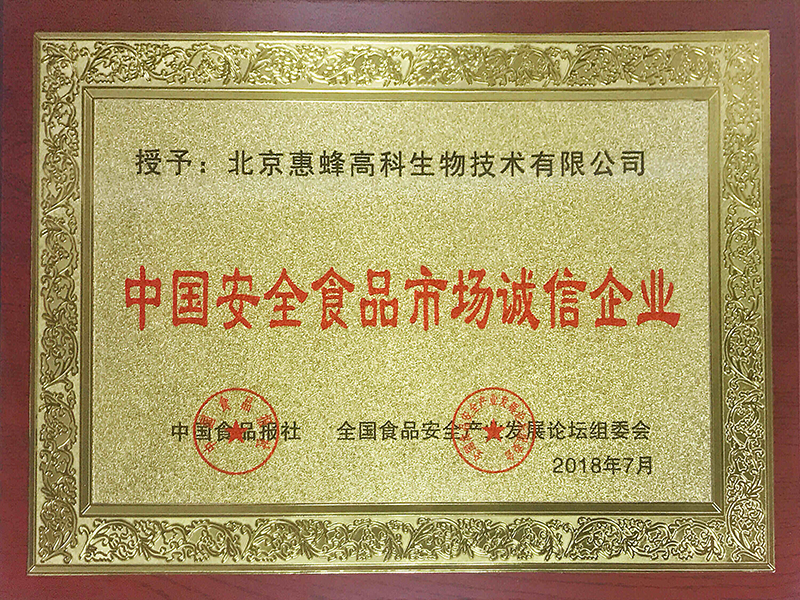 熱烈祝賀北京惠蜂被評為中國安全食品市場誠信企業(yè)