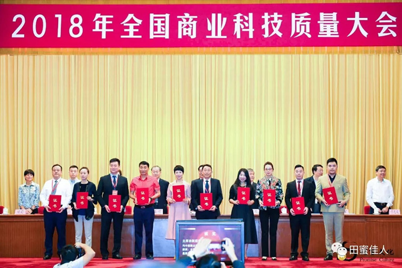 倪仔鑫董事長(左一)代表北京惠蜂領(lǐng)取“全國商業(yè)質(zhì)量獎(jiǎng)”