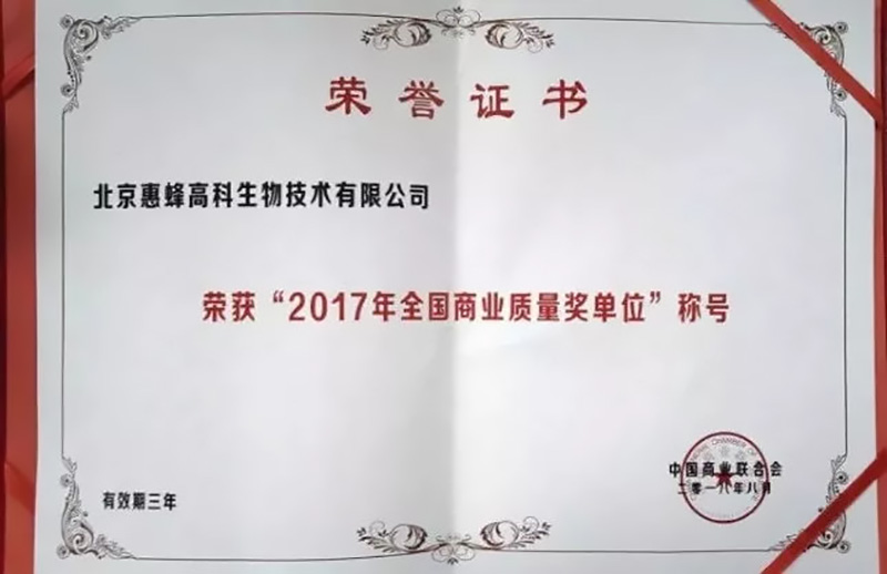 “質(zhì)量好、品牌優(yōu)”的典型示范單位——北京惠蜂在本次大會(huì)榮獲“全國商業(yè)質(zhì)量獎(jiǎng)”,進(jìn)一步增進(jìn)公眾對(duì)北京惠蜂產(chǎn)品以及品牌文化的認(rèn)知;北京惠蜂近年來不斷獲得的各項(xiàng)榮譽(yù)激勵(lì)著惠蜂人提升產(chǎn)品質(zhì)量和品牌意識(shí),讓惠蜂成為全國蜂產(chǎn)品質(zhì)量品牌文化的代言人。
