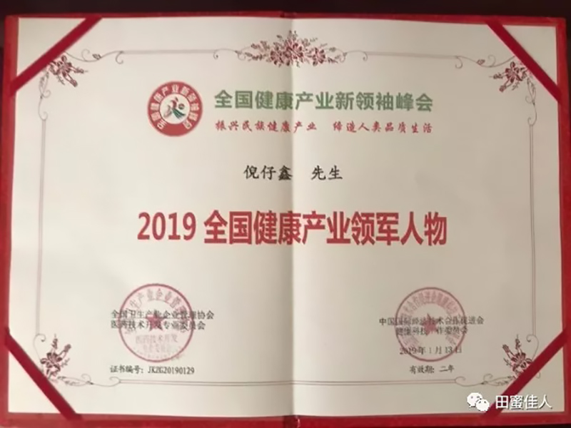 倪仔鑫董事長(zhǎng)榮獲“2019全國(guó)健康產(chǎn)業(yè)領(lǐng)軍人物”